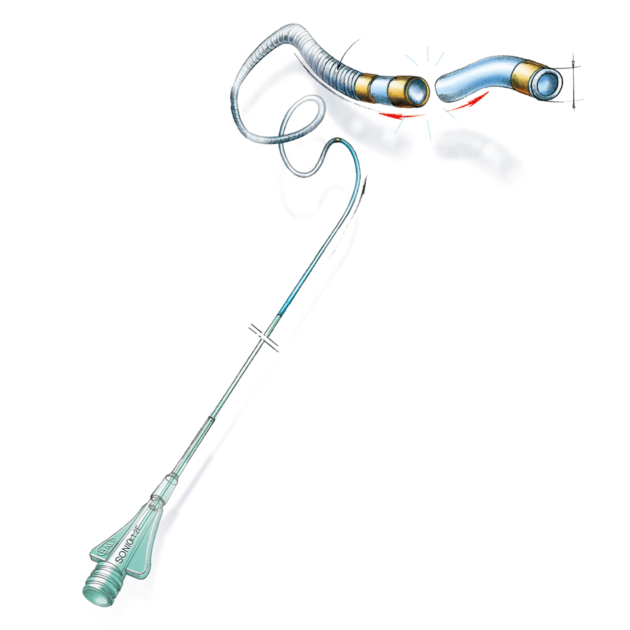catéter de reperfusión con lumen interno 0.043” con un diámetro externo proximal de 4.7 F y distal 3.8 F lo cual permite que este catéter tenga excelente navegación , con una longitud de 160 cm lo que permite llegar a vasculatura muy distal (ACM2).