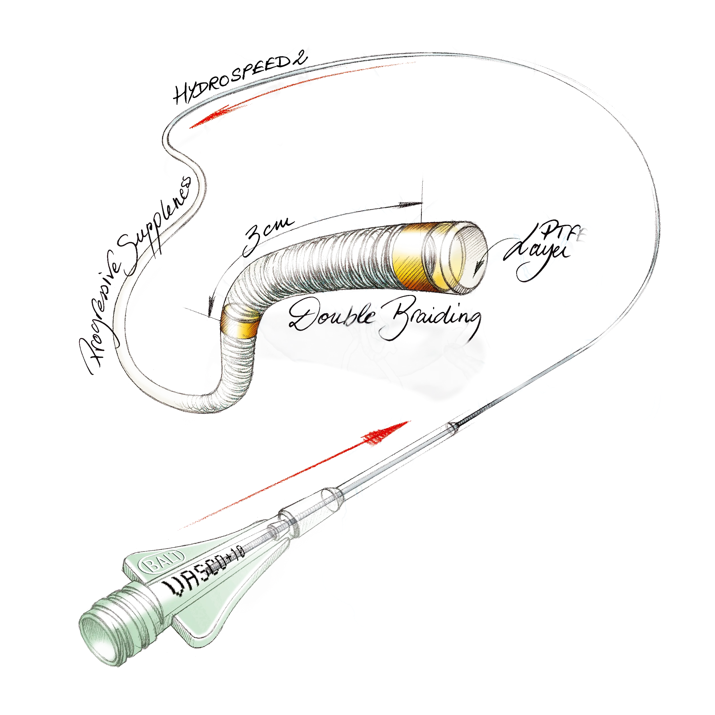 Microcatéter de punta desprendible, compatible con DMSO de 1,2 F y 1.5 F , diseñado para la inyección prolongada de líquido embolizante, flexibilidad suave y progresiva , cuenta con 3 marcas radiopacas, compatibles con micro guías hybrid, excelente navegación.
